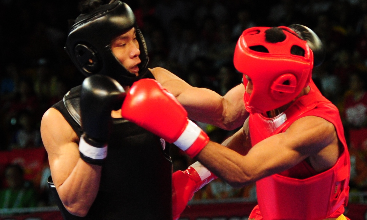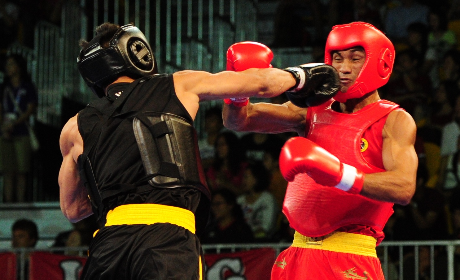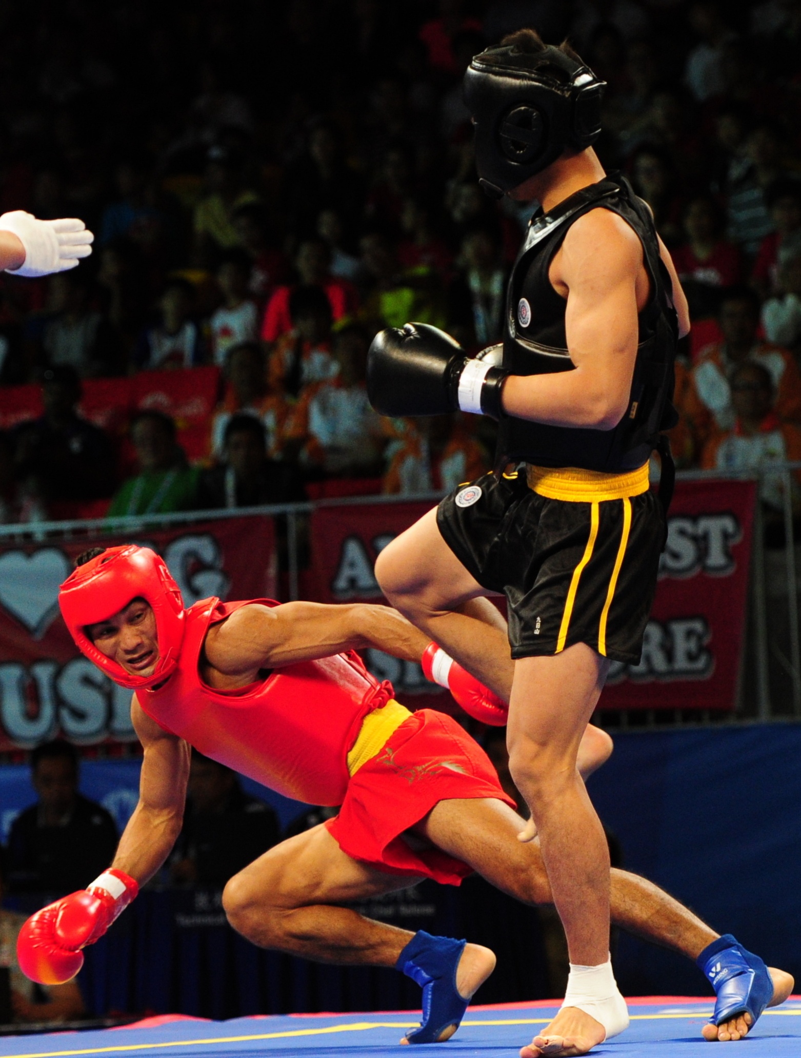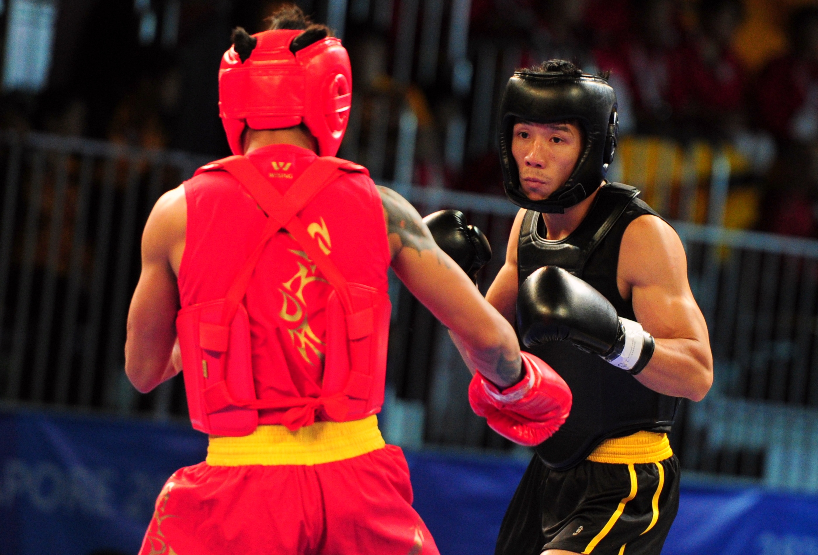 | Võ sĩ của Việt Nam tung ra những cú đấm chính xác liên tiếp về phía đối phương. |
