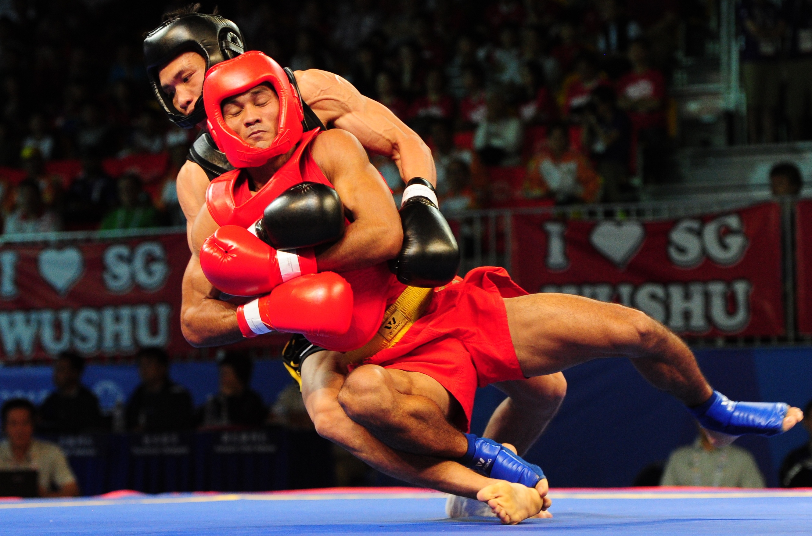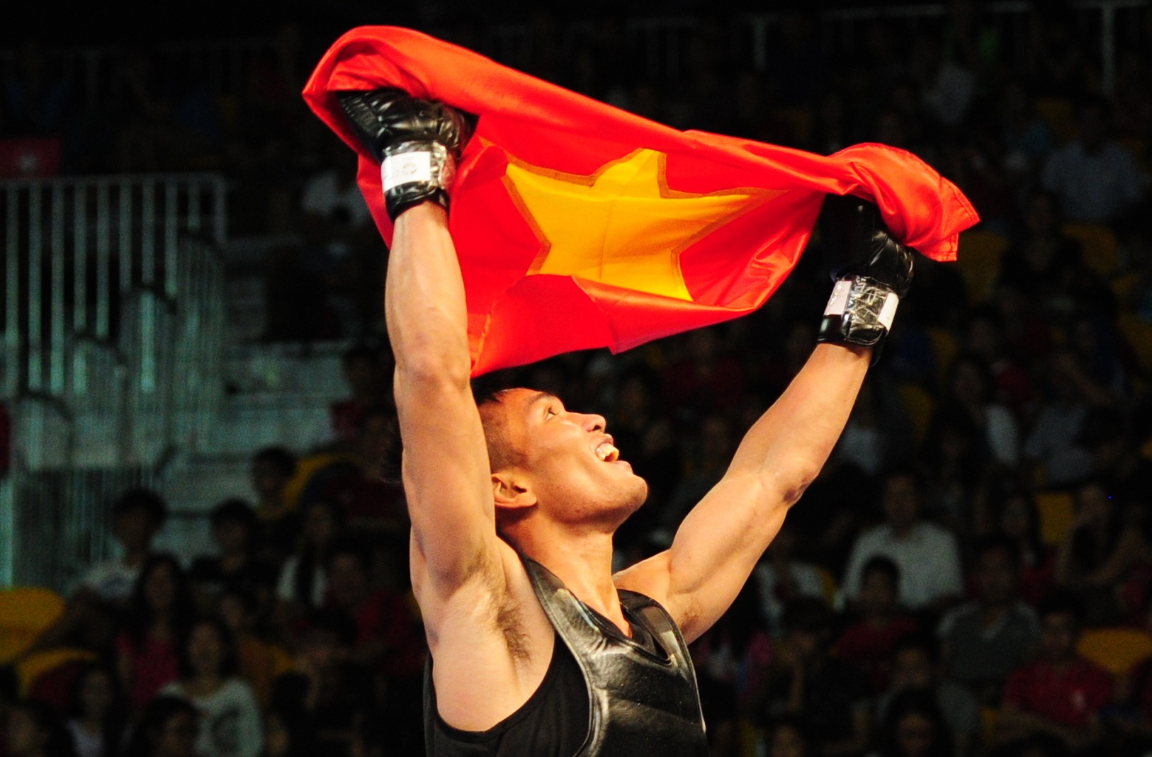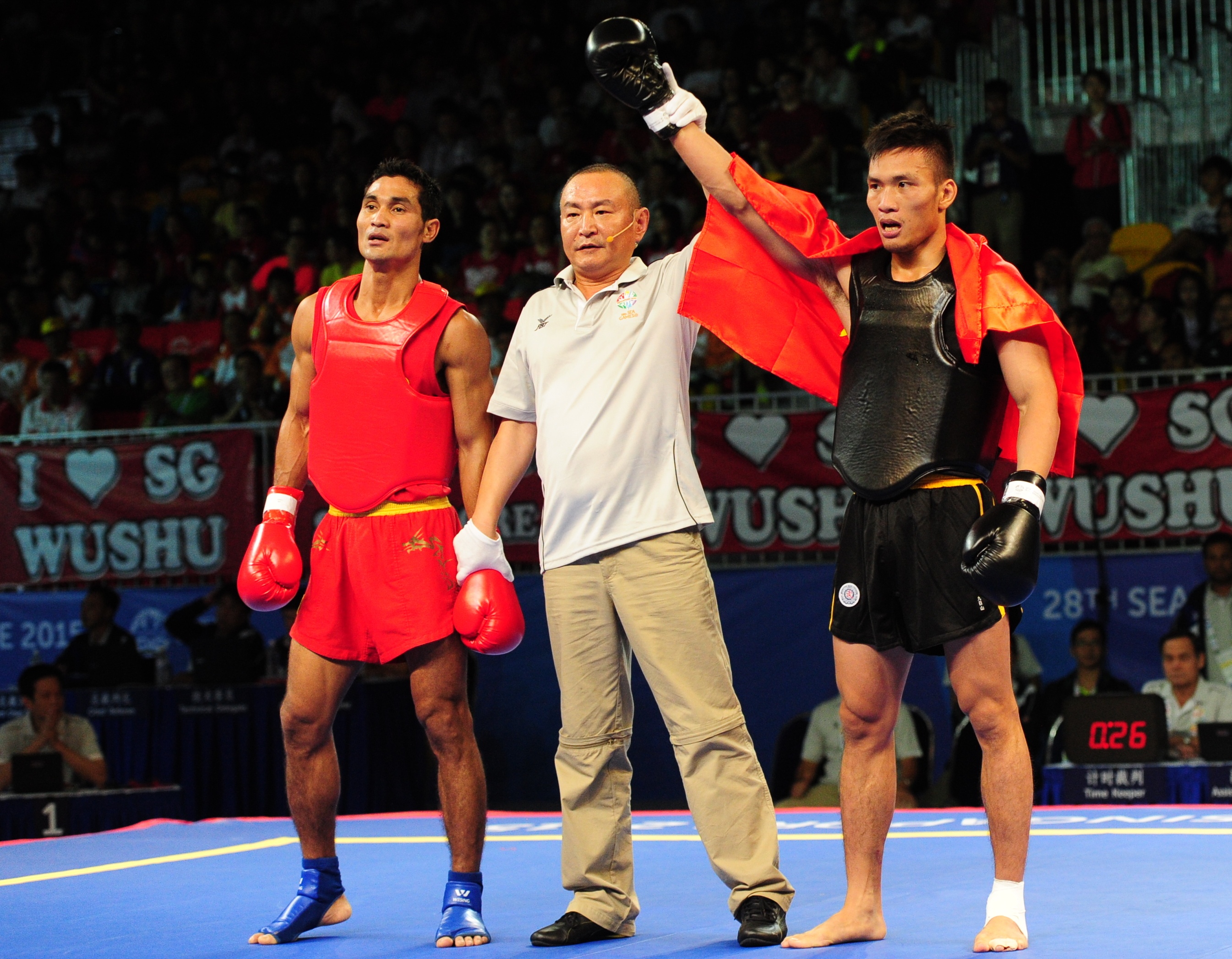 | Nguyễn Văn Tài giành chiến thắng 2-0 trước võ sĩ Myanmar để mang về HCV thứ 2 cho Đoàn thể thao Việt Nam nội dung tán thủ cá nhân. |