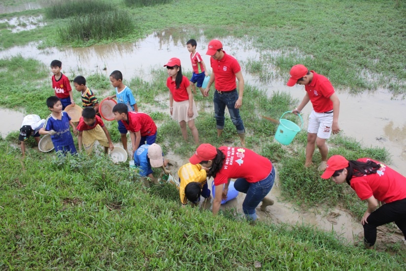 | Chiến dịch mò cua bắt ốc của cả đoàn kết thúc vẻ vang và hào hứng. Dù mệt những ai cũng hăm hở khi thu được thành quả lao động xứng đáng. Các bạn nhỏ vui hơn hơn khi hiểu được công việc thường ngày của những người bạn nơi đây. |