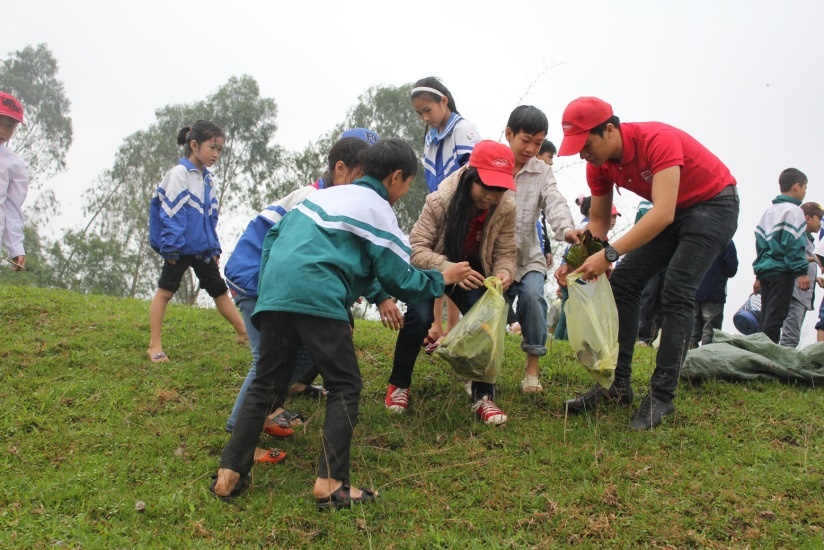 Dù trời lất phất mưa, các bạn nhỏ vẫn hăng say dọn dẹp vệ sinh. Nhờ vậy, chẳng mấy chốc, bờ đê Tả Lam lại xanh đẹp.