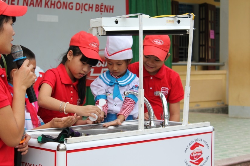 | Hướng dẫn tỉ mỉ các bạn nhỏ rửa tay sạch với xà phòng Lifebuoy, Thu Hà cùng các em nhỏ khoe đôi tay sạch khuẩn và thơm phức của mình trước ống kính. |