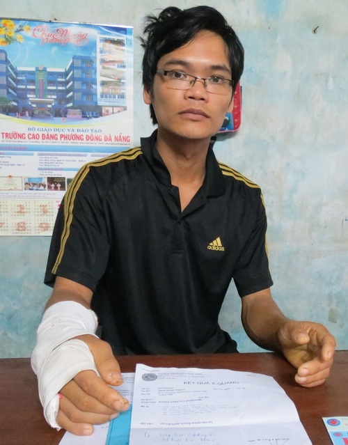 | Anh Trần Ngọc Thạch bị bó nhầm tay. |