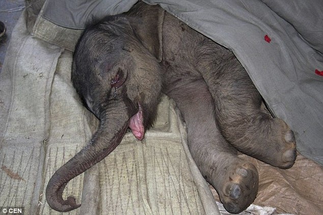 Chú voi tội nghiệp này sinh ngày 30/8 tại một công viên ở Trung Quốc.