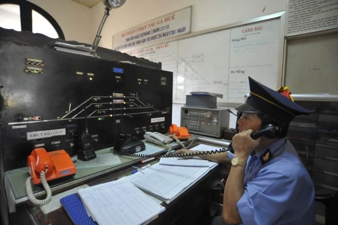 | Điều hành tàu chạy trước bão ở ga Huế. |
