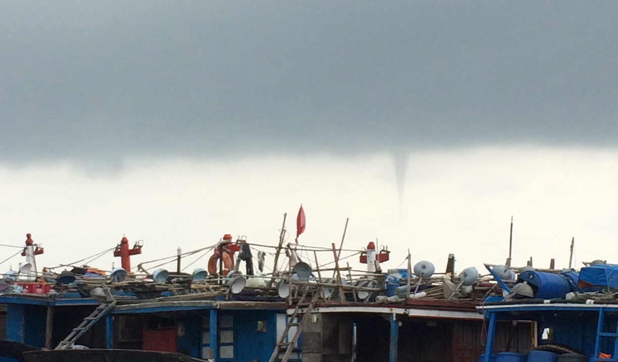 | Hình ảnh vòi rồng ở Phú Vang. Hiện vòi rồng này vẫn tiến về phía đất liền. |