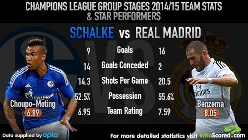| Những con số thống kê của Real tại vòng bảng hoàn toàn vượt trội so với Schalke. |