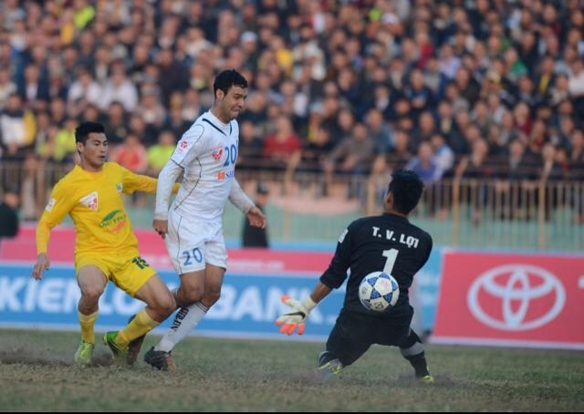 | Dzravko lần đầu được đá chính trong màu áo HAGL, tuy nhiên anh thi đấu mờ nhạt và bỏ lỡ nhiều cơ hội ghi bàn cho đội bóng phố Núi. |