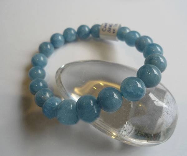 | Vòng đá aquamarine kết hợp với ngọc xanh và nam châm hematite hợp với người mệnh Mộc có giá 1,245 triệu đồng mỗi chiếc. |