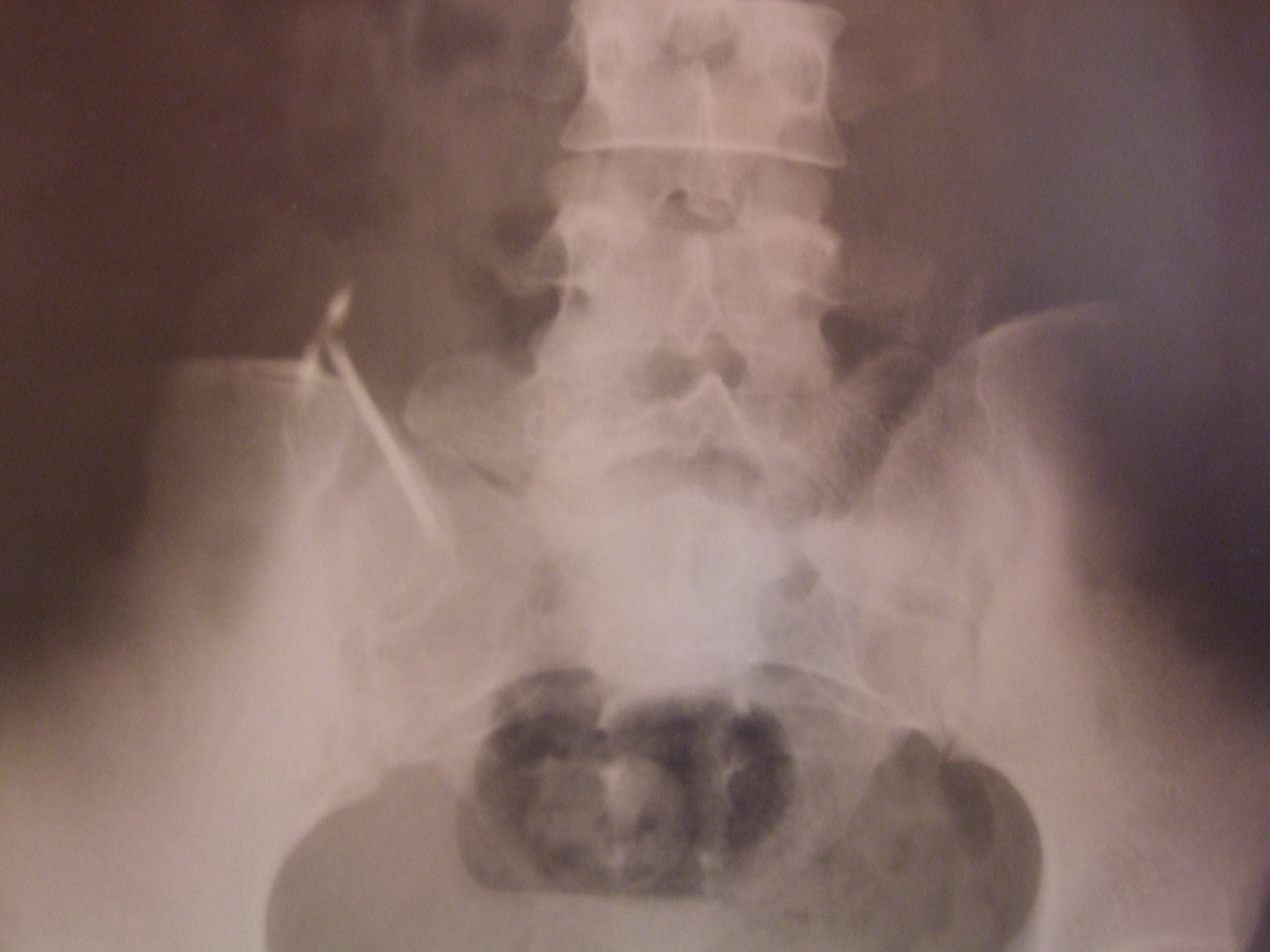 | Hình ảnh chụp X-quang cho thấy vòng tránh thái lọt xuống ổ bụng. |