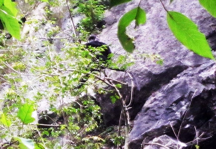 | Chuyên gia nước ngoài đã tiếp cận vách đá nhưng vẫn không thể cứu voọc con bị mắc kẹt |