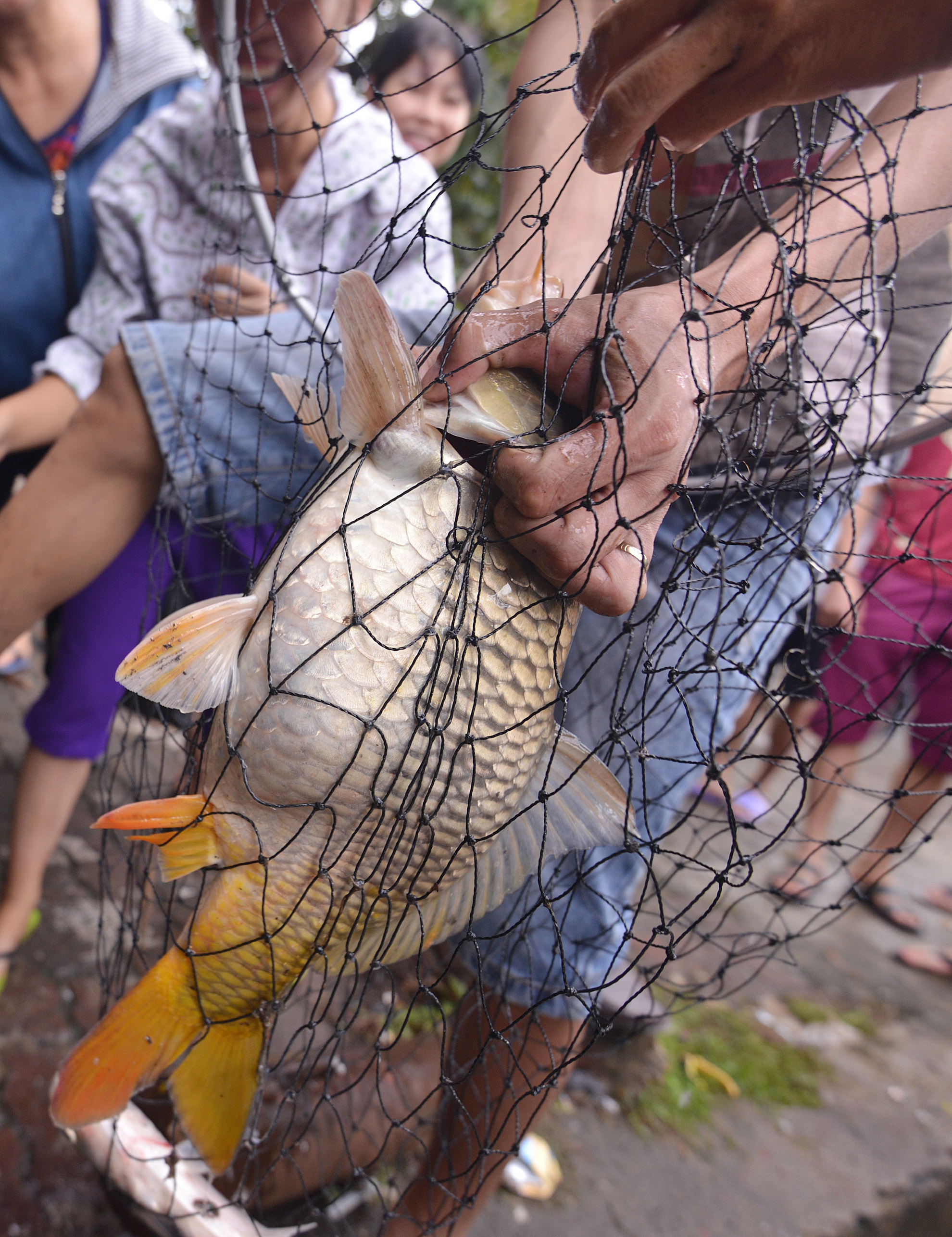 Từ các cống đổ ra sông Kim Ngưu, cá cũng theo đó về đây khá nhiều.