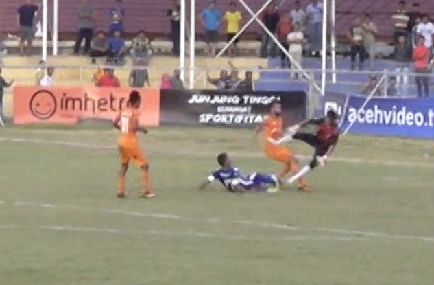 | Thủ môn Agus Rohman vào bóng thô bạo khiến cầu thủ đối phương thiệt mạng. |