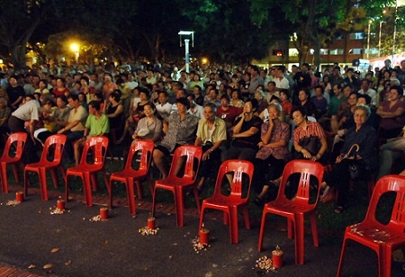 Ở Singapore và Malaysia, những buổi văn nghệ quần chúng cũng là nét văn hóa nổi bật trong dịp lễ này. Những sân khấu dựng tạm là nơi để các ca sĩ, vũ công nghiệp dư biểu diễn. Tiền dựng rạp và thuê người biểu diễn sẽ do người dân địa phương cùng nhau quyên góp.