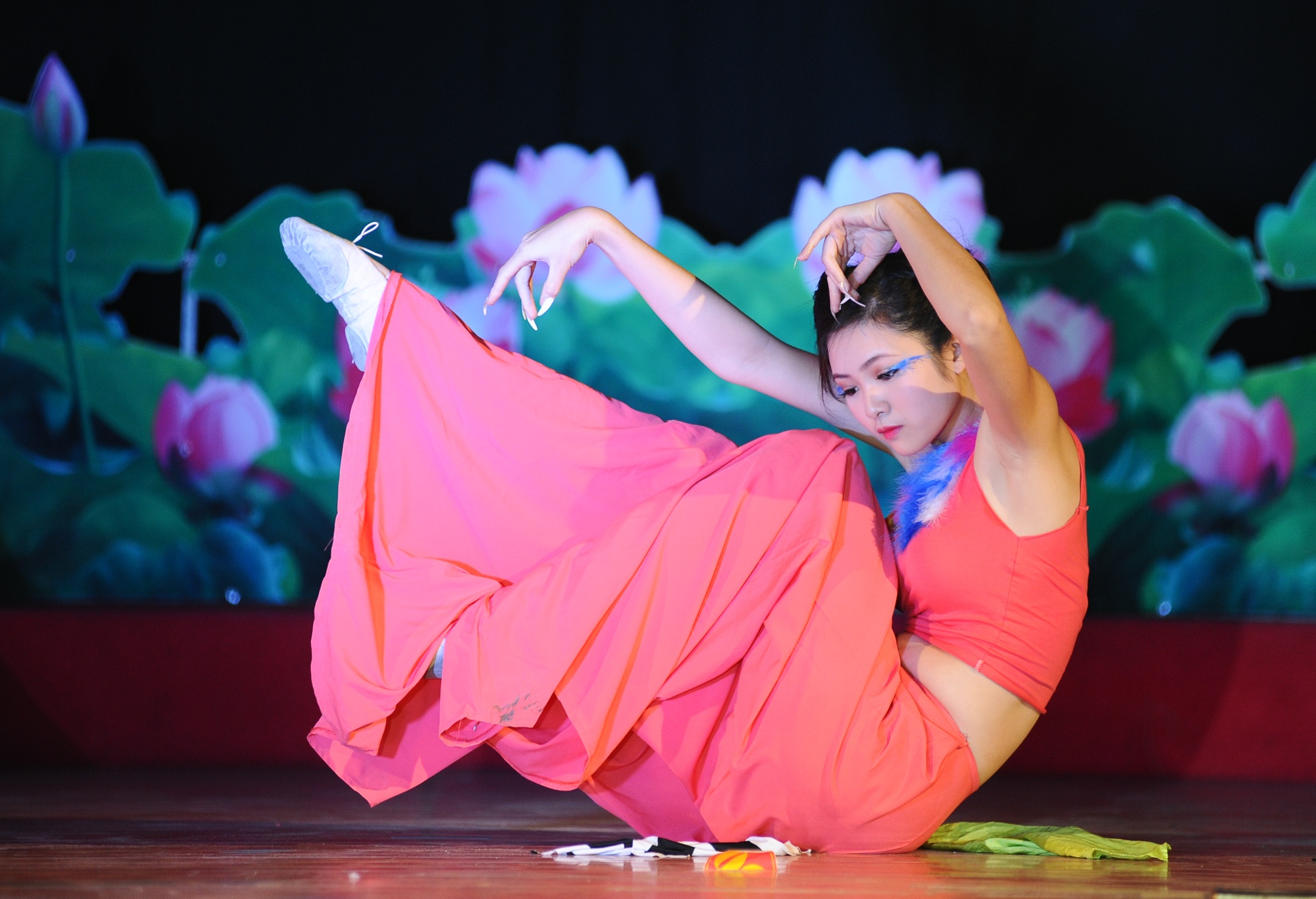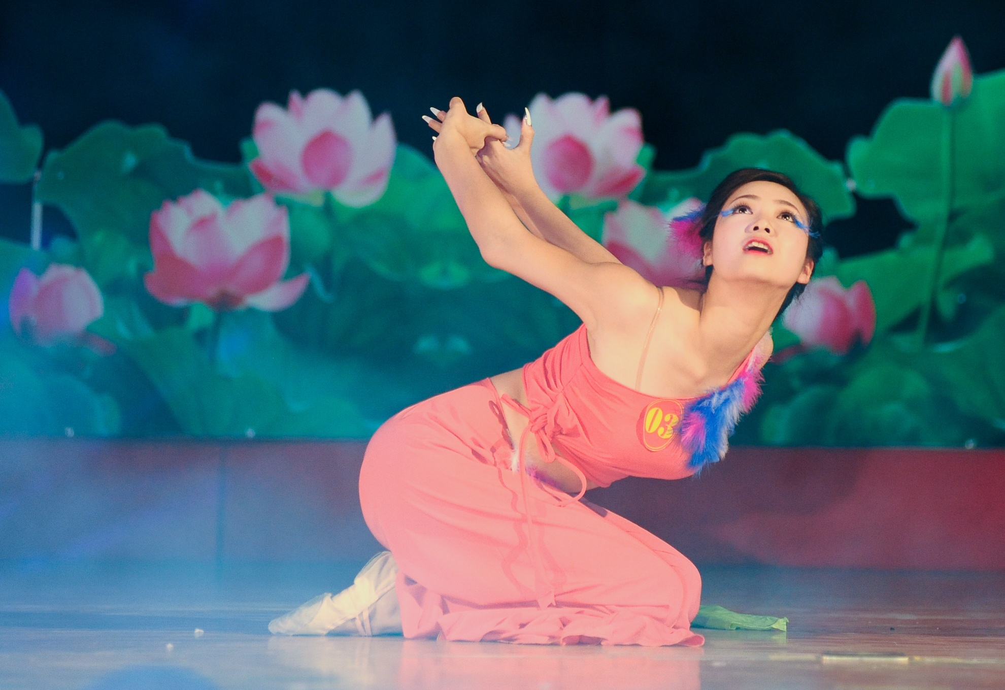Ở phần thi tài năng của mình, Trương Thị Huệ Nhi đã khiến khán phòng sôi động nhờ các động tác vũ đạo độc đáo trong tiết mục múa "Lạc giữa rừng mơ".