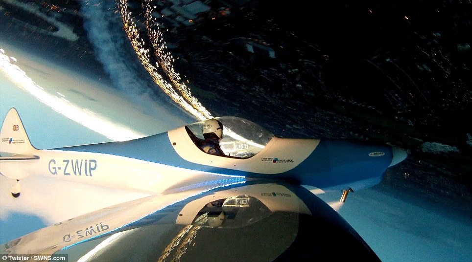 | Phi công này đích thực là một nghệ sỹ trên không gian. |