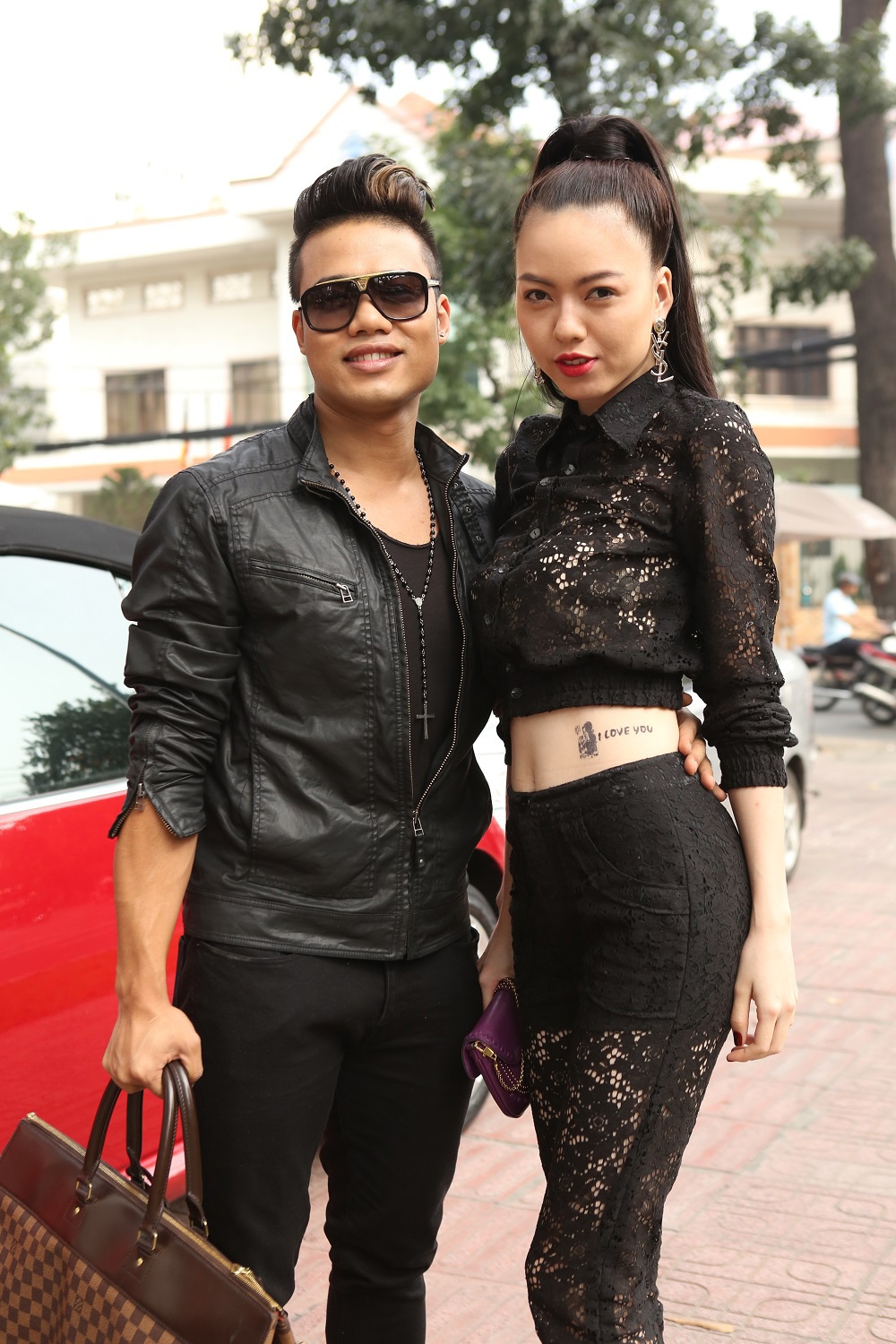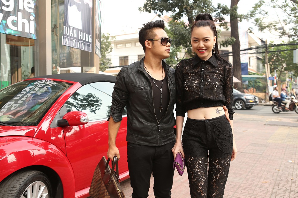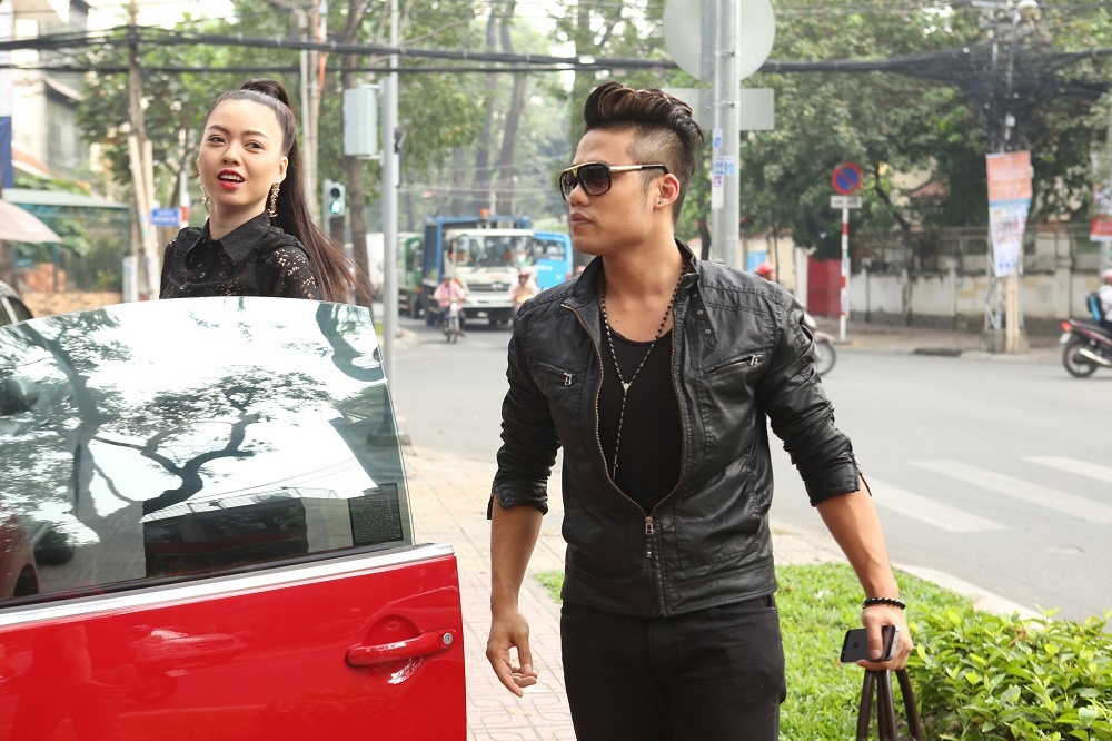 | Vũ Hoàng Điệp đến từ rất sớm để chuẩn bị cho buổi họp báo cùng Ngọc Minh. Cô được nam ca sĩ tháp tùng bằng chiếc xe "con bọ" đáng yêu của mình. Thời gian này, "nữ hoàng sắc đẹp quốc tế" thường xuyên gặp gỡ và hẹn hò với nam ca sĩ Hà thành. |