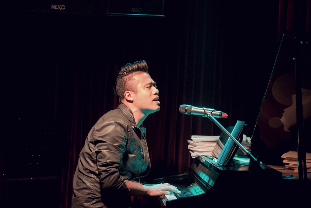 | Ngọc Minh tự đàn piano hát ca khúc Đêm màu xanh. Với tài lẻ chơi piano rất nghệ sĩ và giọng hát trầm ấm nam tính, anh khiến rất nhiều người bất ngờ. |