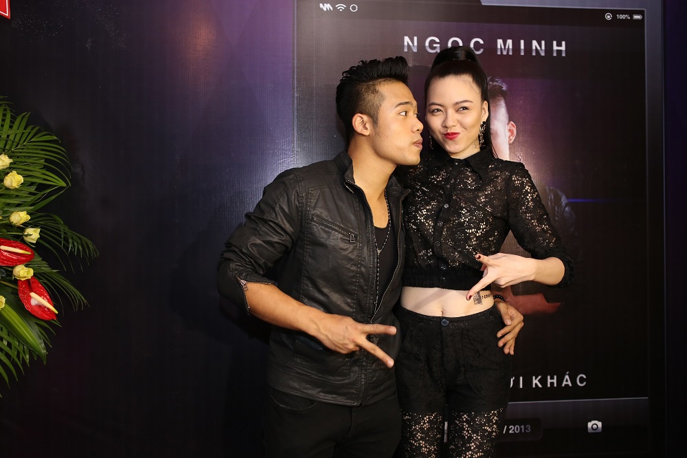 | Phương Thanh cũng đến chúc mừng đàn em. Nữ ca sĩ dành một tình cảm đặc biệt cho nam ca sĩ Hà Nội. Trong khi đó, với Ngọc Minh, "chị Chanh" chính là người thôi thúc anh trở lại với âm nhạc. Và là người có ảnh hưởng lớn trong cuộc sống hiện tại của anh. |