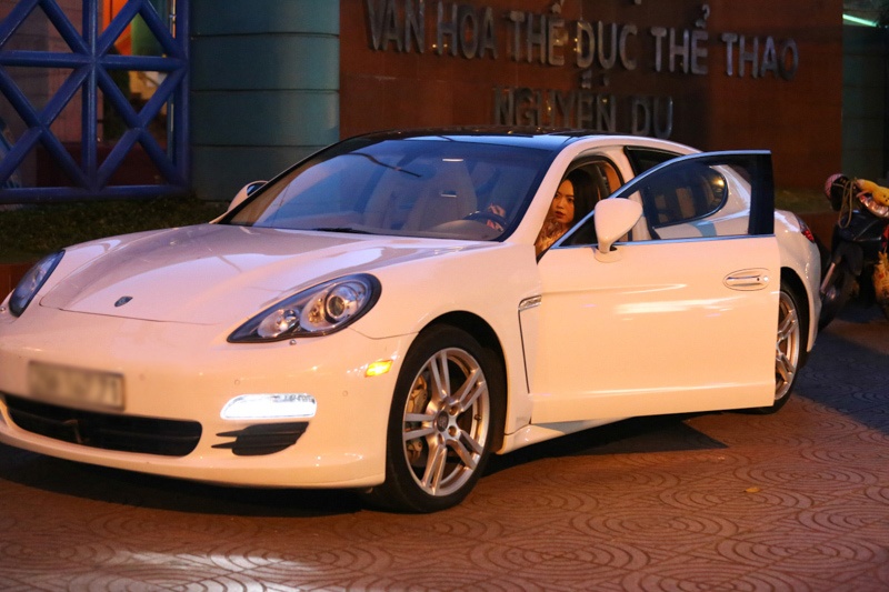| Xuất hiện tại Nhà thi đấu Nguyễn Du chiều qua 24/12, Vũ Hoàng Điệp thu hút sự chú ý khi tự lái chiếc xe Porsche màu trắng sang trọng. |