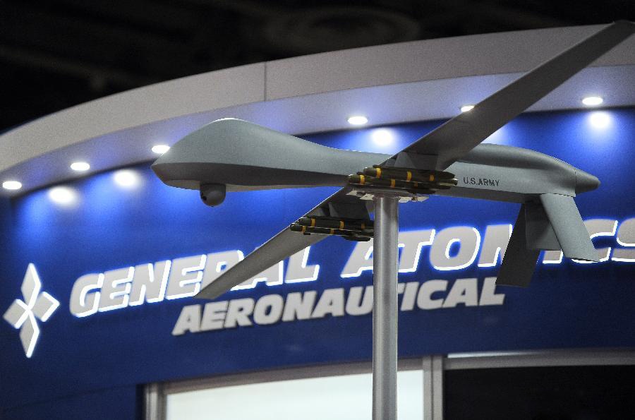 | Mô hình máy bay không người lái vũ trang Predator của hãng chế tạo máy bay General Atomics. Từng chứng tỏ khả năng vượt trội trong cuộc chiến của Mỹ ở Iraq và Afghanistan cũng như cuộc chiến chống khủng bố trên đất Pakistan, Predator thu hút sự chú ý từ nhiều quốc gia khắp thế giới. |