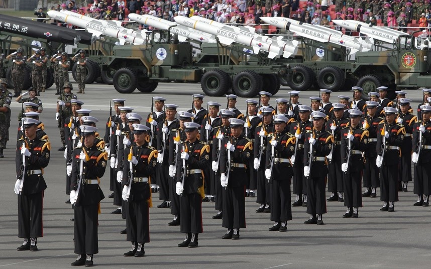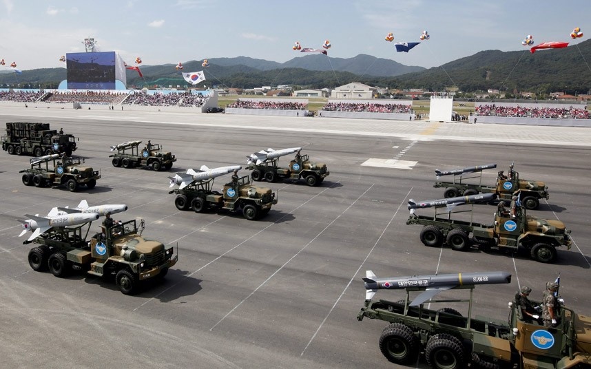 Trong khi Triều Tiên thường xuyên tổ chức các lễ diễu hành quy mô để phô trương sức mạnh, đây là lần đầu tiên Hàn Quốc tổ chức lễ diễu hành kể từ năm 2008. Ảnh: AP. |