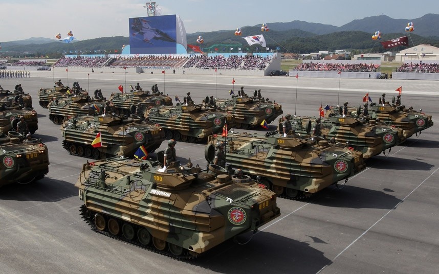 Xe bọc thép là một trong những phần quan trọng của quân đội Hàn Quốc. Do Hiệp định đình chiến năm 1953 chưa đủ hiệu lực để kết thúc chiến tranh trên bán đảo Triều Tiên nên cả Bình Nhưỡng và Seoul đều đẩy mạnh phát triển quân đội, trong đó chú trọng vào khả năng cận chiến. Ảnh: Getty Images. |