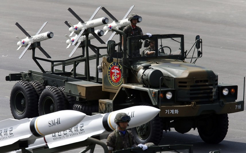 Các loại tên lửa khác của Hàn Quốc cũng xuất hiện tại lễ diễu hành lớn nhất 1 thập niên trở lại đây. Ảnh: EPA. |