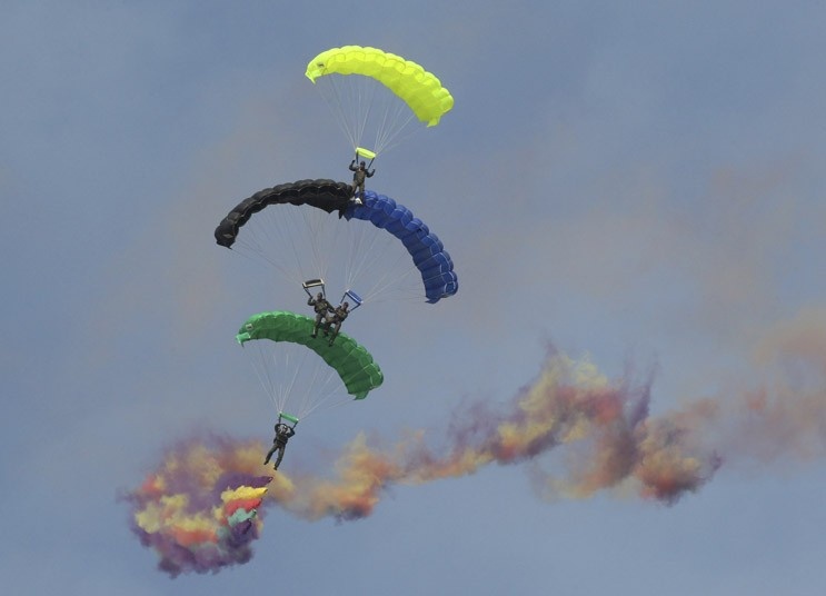 Lính dù phô diễn khả năng tác chiến ngay trong khuôn khổ lễ kỷ niệm. Ảnh: AP. |