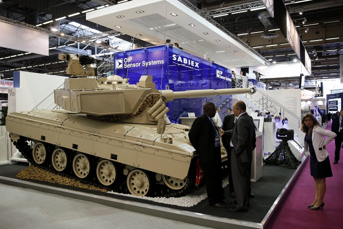 Dưới sự bảo trợ của Bộ Quốc phòng Pháp, Eurosatory là một trong những triển lãm vũ khí và trang thiết bị quân sự lớn nhất được tổ chức ở châu Âu và trên thế giới. Triển lãm được tổ chức trên nền diện tích rộng 120.000m2 với sự góp mặt chính thức của 107 quốc gia và 1.456 công ty nước ngoài từ 57 quốc gia khác nhau. Trong ảnh là một xe tăng của công ty Sabiex (Bỉ) được giới thiệu tại triển lãm năm nay. |