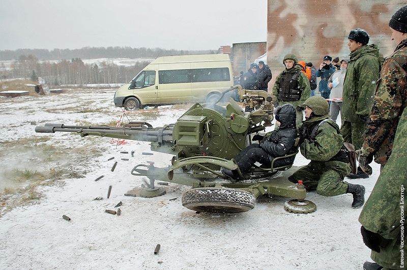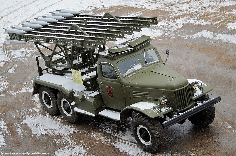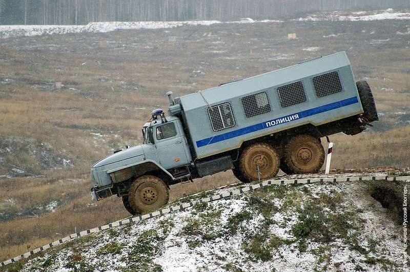Xe phóng tên lửa Katyushas tại khu vực đào tạo của Cảnh sát đặc nhiệm Nga. Đây là loại vũ khí ra đời trong Thế chiến II với khả năng tấn công mục tiêu nhanh hơn các loại đạn pháo thông thường. Phương tiện này vẫn hoạt động tốt nhưng người ta không biết rõ về vai trò của nó đối với cảnh sát đặc nhiệm. |