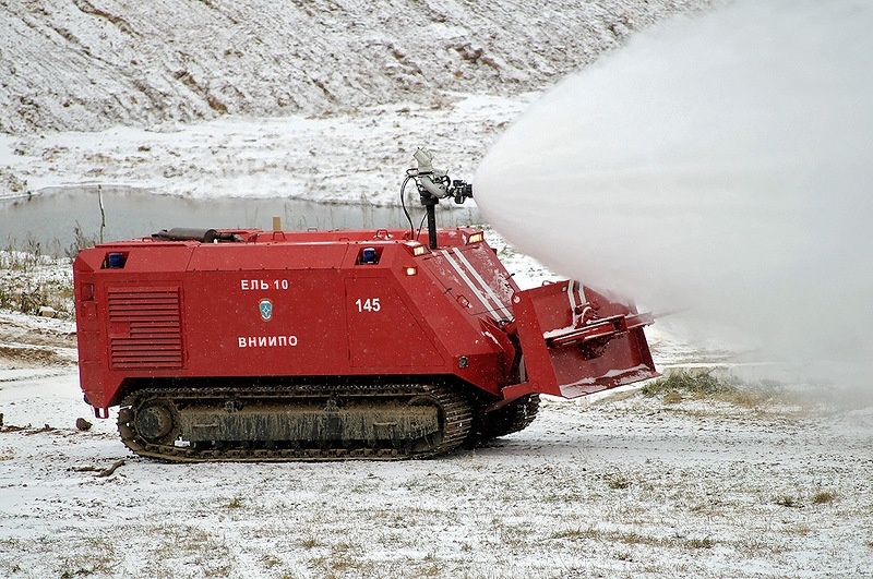Xe chống bạo động bánh xích, bọc thép, phun nước để đẩy lui những phần tử quá khích. Phần lưỡi ủi phía trước giúp nó dễ dàng gạt bỏ chướng ngại vật trong quá trình di chuyển. |