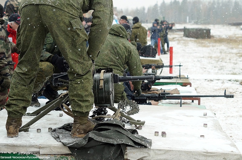 Súng máy và súng bắn tỉa hạng nặng tại thao trường. Cảnh sát đặc nhiệm Nga được trang bị nhiều loại vũ khí uy lực tương tự như quân đội. |