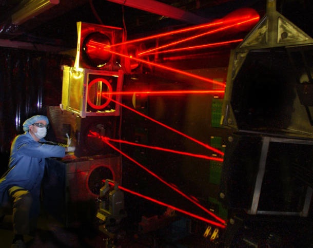 | Các nhà khoa học đang tiến hành thử nghiệm việc tập trung năng lượng cho tia laser để đạt mức năng lượng cần thiết nhằm phá hủy mục tiêu. Ảnh: News.cnet. |