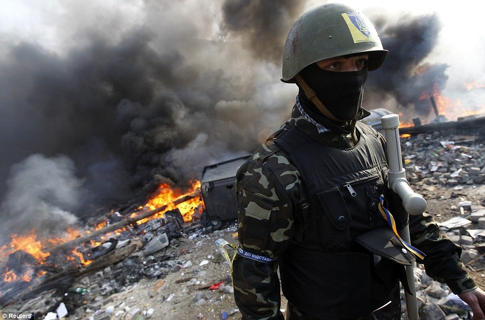 Theo những thống kê mới nhất, bạo lực leo thang ở thủ đô Kiev của Ukraina khiến 25 người chết, bao gồm cảnh sát, nhà báo và những người biểu tình chống chính phủ. Lửa, khói đen bao vây toàn bộ trung tâm thủ đô Kiev. Ảnh: Reuters.