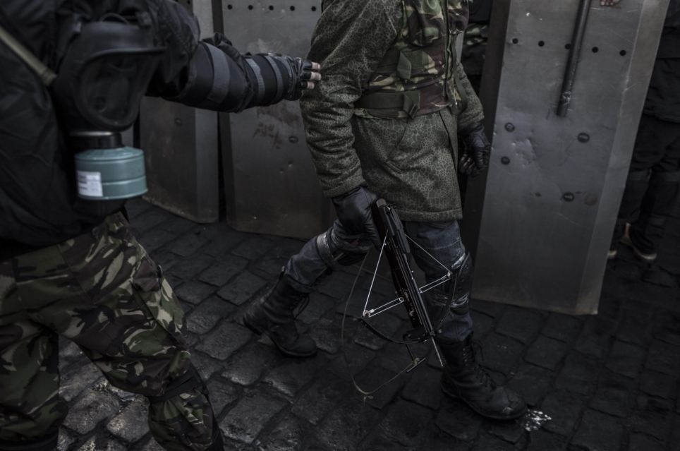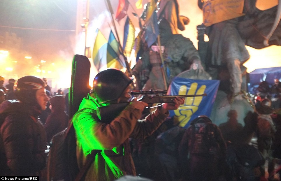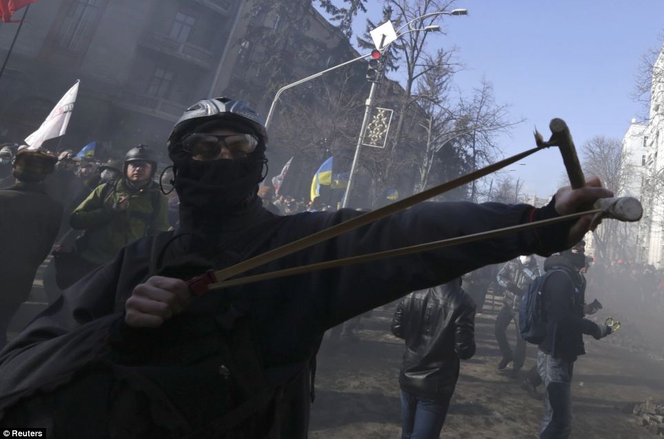 Người biểu tình Ukraina cũng sử dụng súng cao su. Ảnh: Reuters.