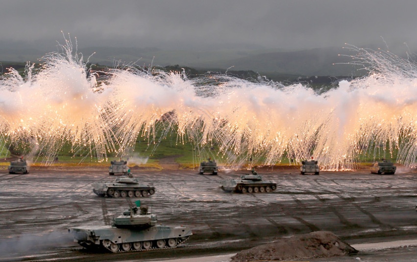 Lực lượng phòng vệ Nhật Bản đang tổ chức cuộc tập trận bắn đạn thật quy mô lớn với sự góp mặt của nhiều loại vũ khí hiện đại.