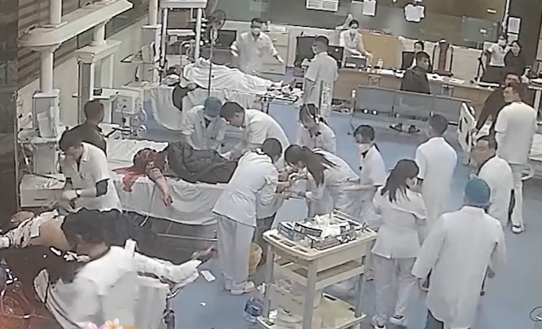 Các bệnh nhân được cấp cứu tại Bệnh viện Đa khoa Quốc tế Hợp Lực. Ảnh chụp màn hình, |
