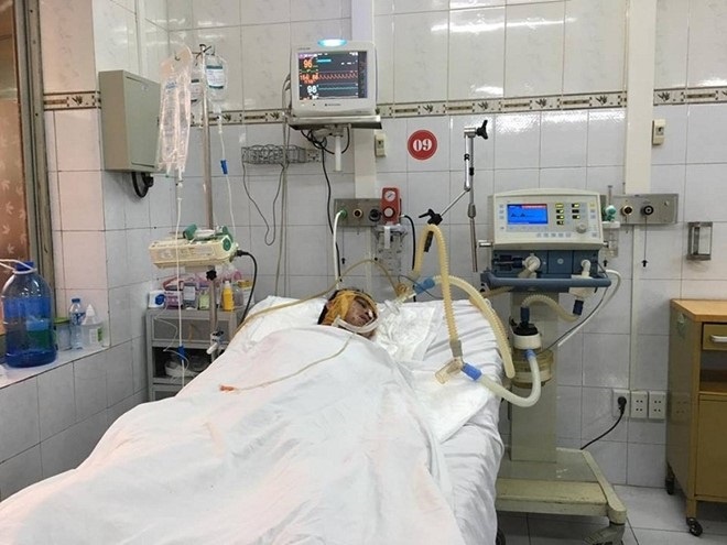 Sau khi nhập viện cấp cứu, ngày 21/3, bệnh nhân đã được mở khí quản để thông khí nhân tạo. Bệnh nhân được tiếp tục điều trị chống phù não, kiểm soát huyết động, thay băng vệ sinh vết thương phần mềm. Tuy nhiên, bệnh nhân ý thức không tốt, đặc biệt có sốt cao, tiến triển nặng hơn.