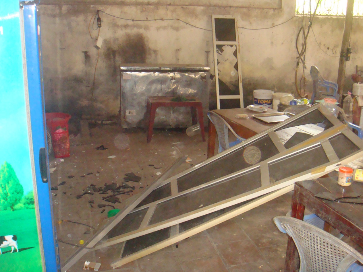 Khu tập thể của công nhân và lãnh đạo xí nghiệp cao 3-4 tầng bị vỡ kính, cửa sắt bị sức ép của vụ nổ uốn cong, mái lợp bằng tôn, sắt cũng bị sập rơi xuống sân, và đường.