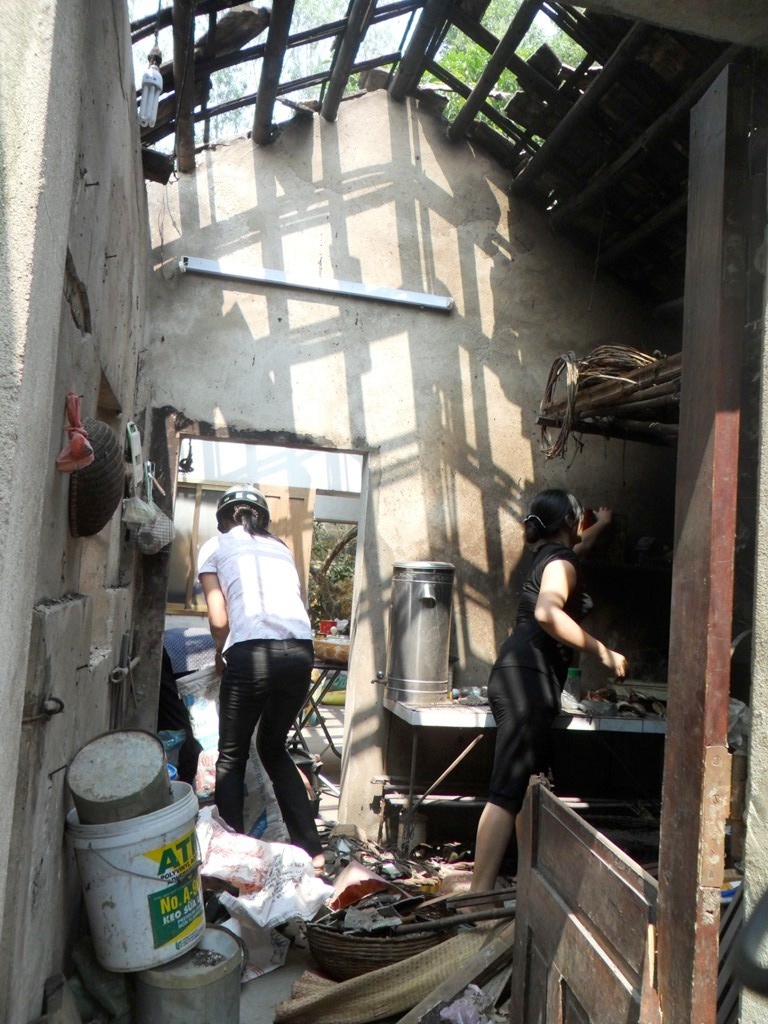 | Người thân của anh Trường đến giúp thu dọn ngôi nhà. Nhiều người thân đã không kìm được nước mắt khi chứng kiến cảnh tan hoang trong căn nhà của gia đình anh Trường. Gia đình hy vọng chính quyền sẽ có những sự hỗ trợ kịp thời để gia đình qua được thời điểm khó khăn này. |