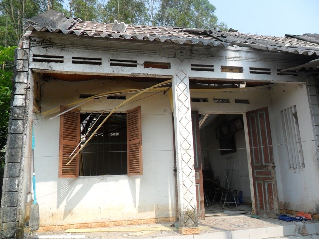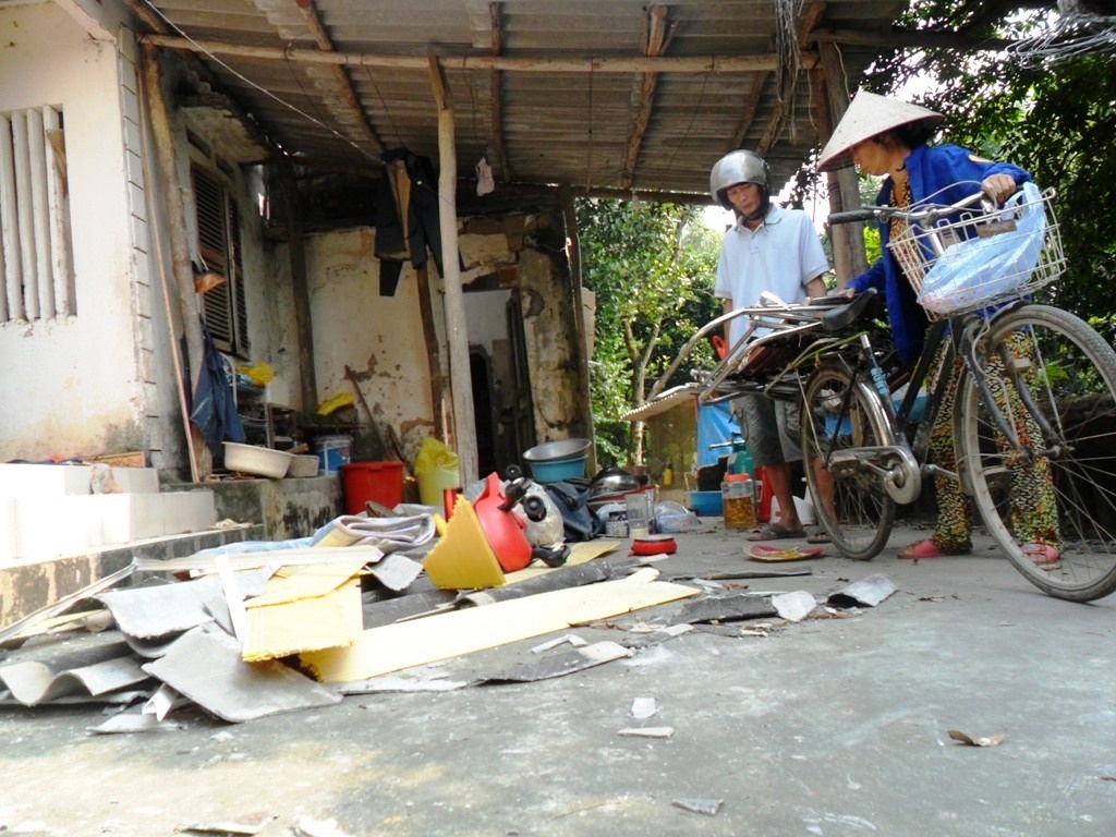 | Đi sâu vào con ngõ cách nhà anh Trường không xa là ngôi nhà của bà Đáp, 75 tuổi. Ngôi nhà này cũng chịu hư hại rất nặng do vụ nổ. Mái nhà, tường nhà đều chịu hư hỏng rất lớn. |