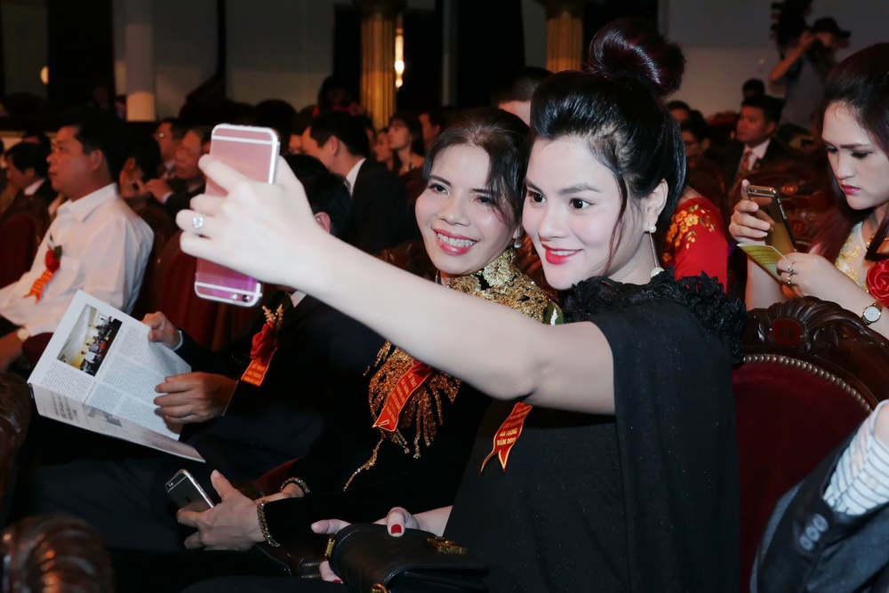 Hôm 25/11, Vũ Thu Phương ra Hà Nội cùng mẹ tham dự lễ trao giải Thương hiệu vàng 2015, vinh danh các doanh nhân thành đạt. Cựu người mẫu sinh năm 1985 vui vẻ chụp ảnh tự sướng cùng mẹ.