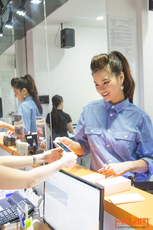 Với trang phục đơn giản, năng động và thu hút, Vũ Thu Phương hào hứng trải nghiệm những tính năng của 1 trong những chiếc iPhone 5S phiên bản Gold đầu tiên tại Việt Nam. Bị ấn tượng bởi màu sắc và tính năng mới nhất của chiếc điện thoại được mong chờ nhất năm 2013, cựu siêu mẫu quyết định “rước luôn”chiếc màu vàng duy nhất trong thời điểm hiện tại của Hnam Mobile.
