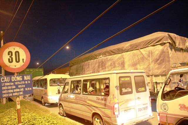 Nhưng dường như kẹt xe, khói bụi vẫn chưa phải là “đặc sản” ở khu vực cầu Đồng Nai. Tuy cầu Đồng Nai mới đã đưa vào sử dụng để giảm bớt gánh nặng cho cầu Đồng Nai cũ, nhưng do việc thi công không đồng bộ dẫn tới ùn tắc giao thông nghiêm trọng. Xe tải, container nối đuôi nhau xếp thành hàng dài trên chiếc cầu đã gần 50 tuổi nên cầu bị rung lắc mạnh, nhiều người "tim đập chân run" sợ cây cầu bị sập.