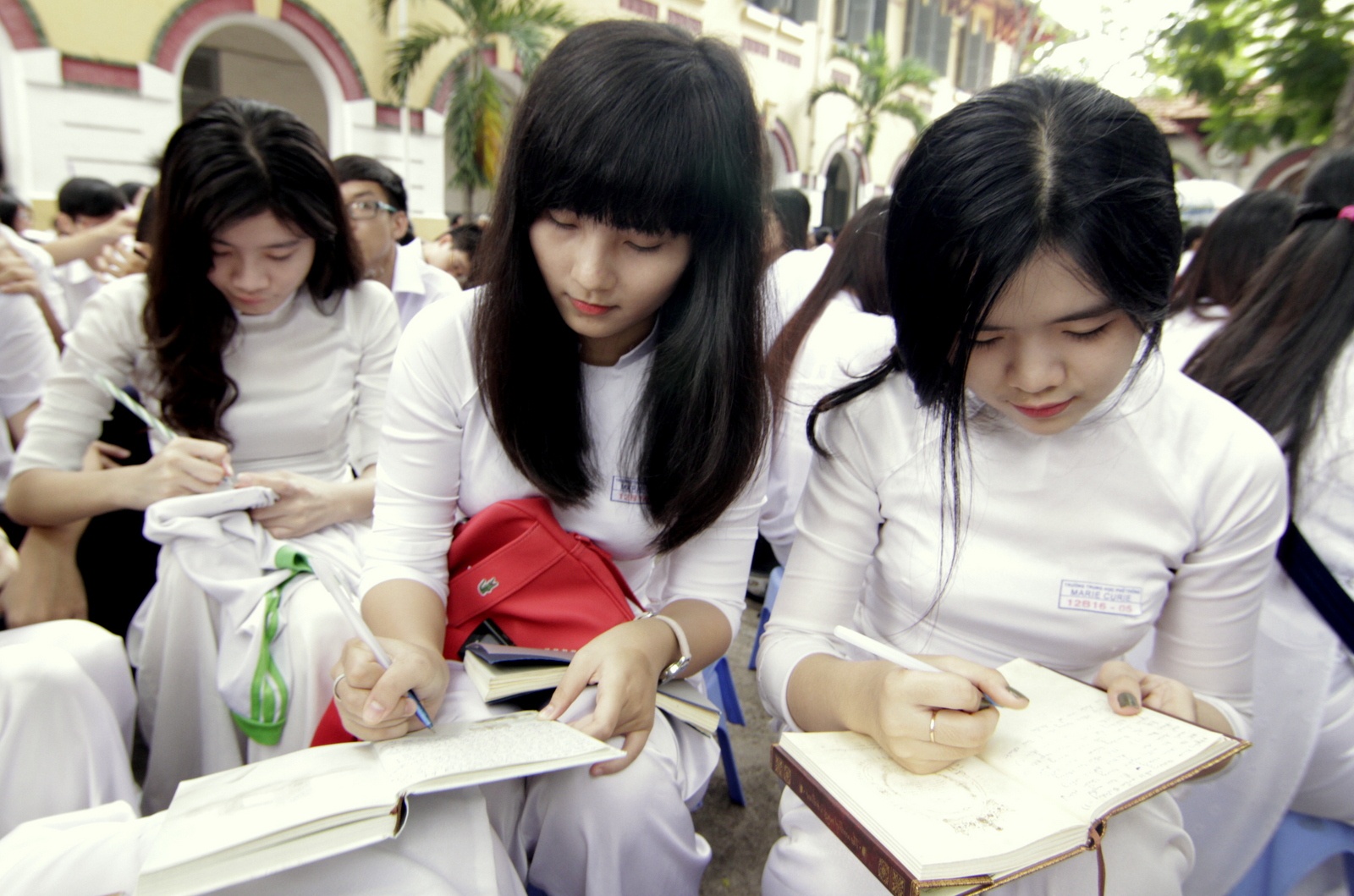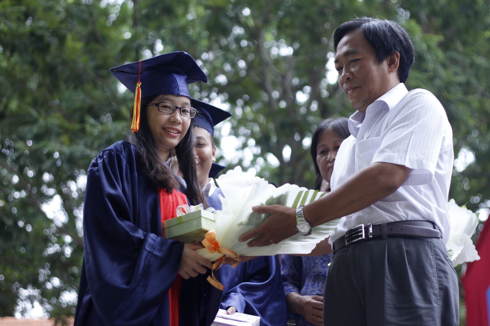 | Sáng 24/5, dưới mái trường cổ kinh Marie Curie (Q.3, TP.HCM) đã diễn ra lễ bế giảng năm học và tri ân dành cho học sinh lớp 12. Buổi lễ bắt đầu bằng những ca khúc quen thuộc về thầy cô, trường lớp do học sinh biểu diễn. |