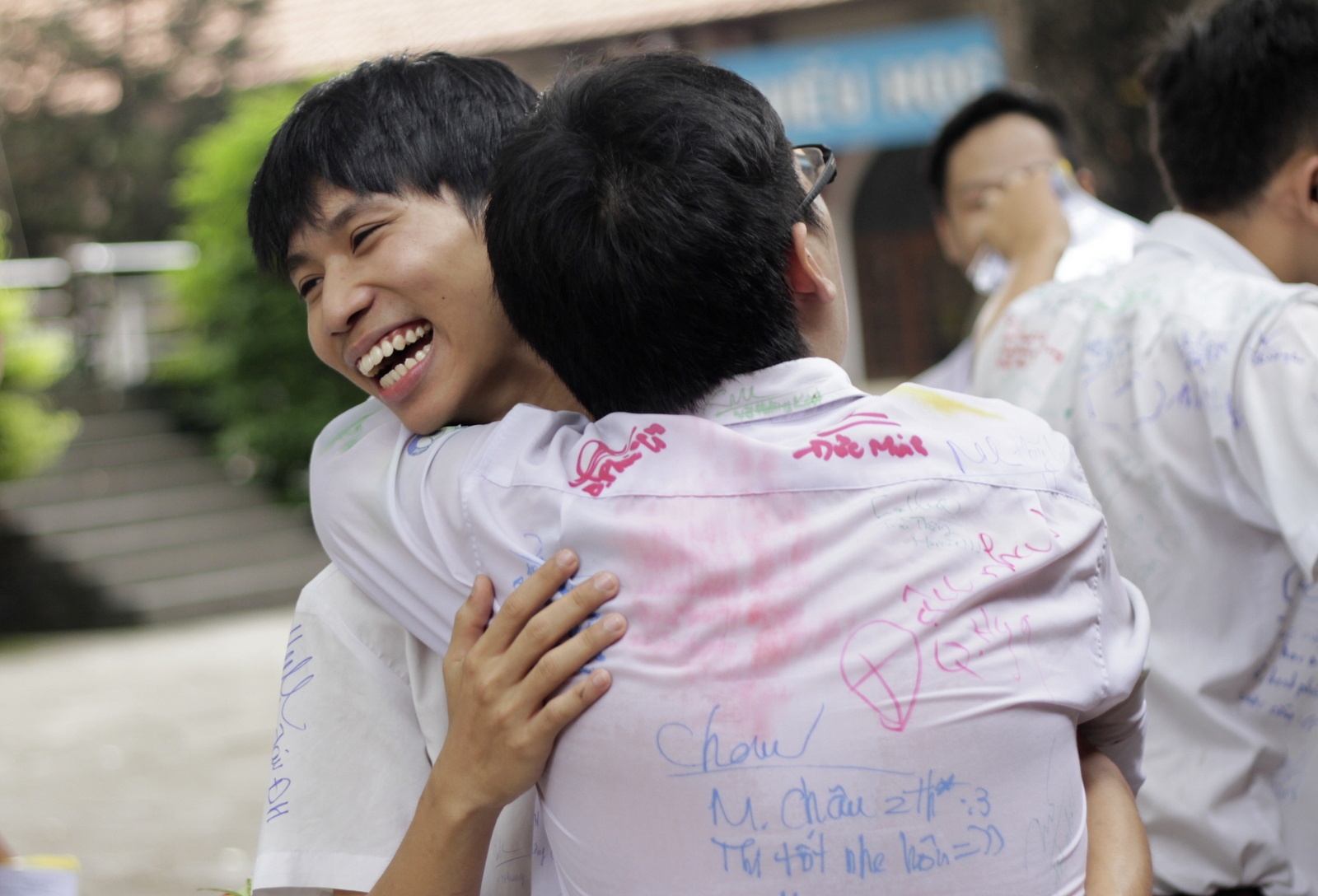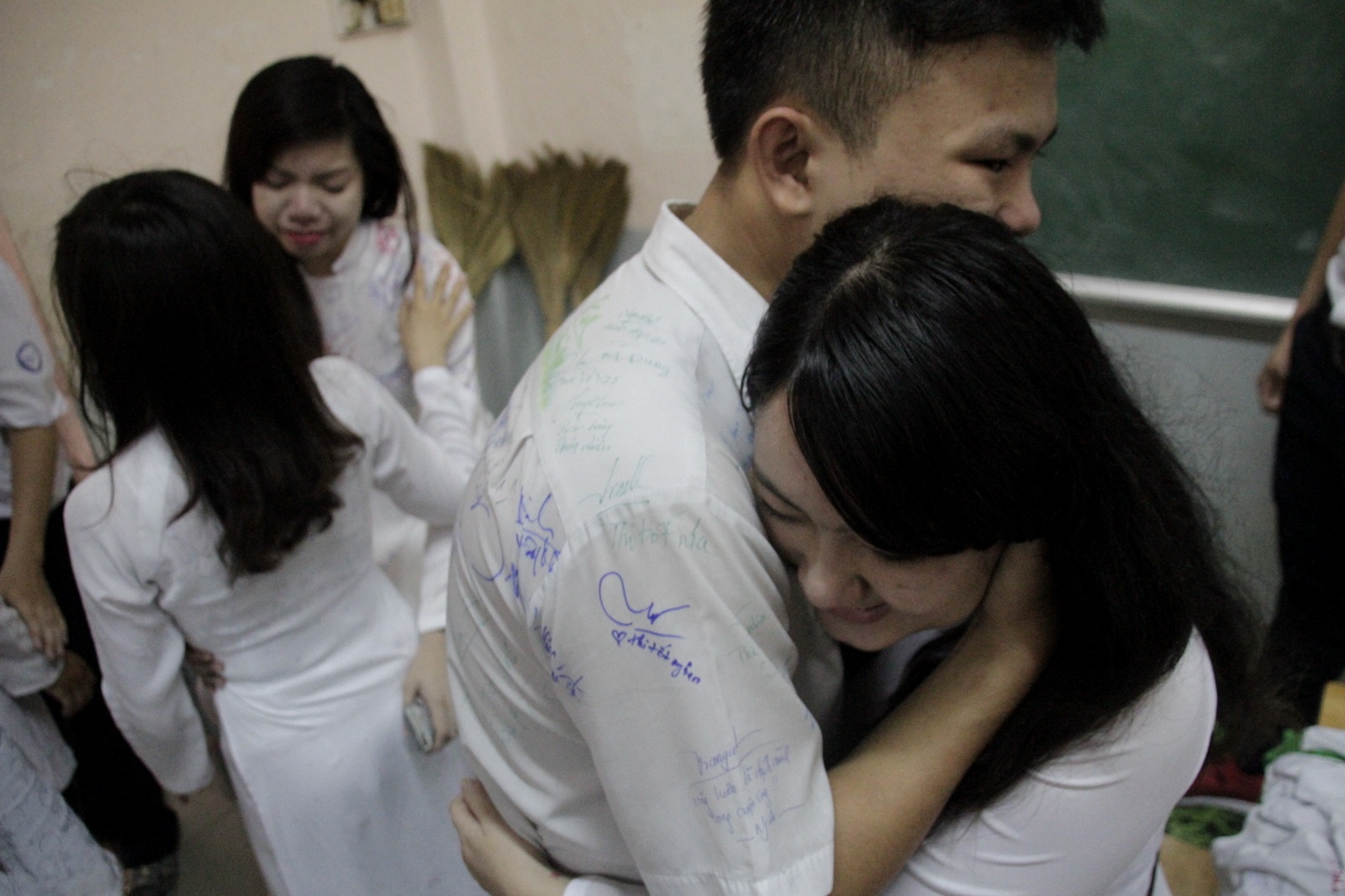| Sau lưu bút, ký tặng là những cái ôm thật chặt dành cho nhau. |