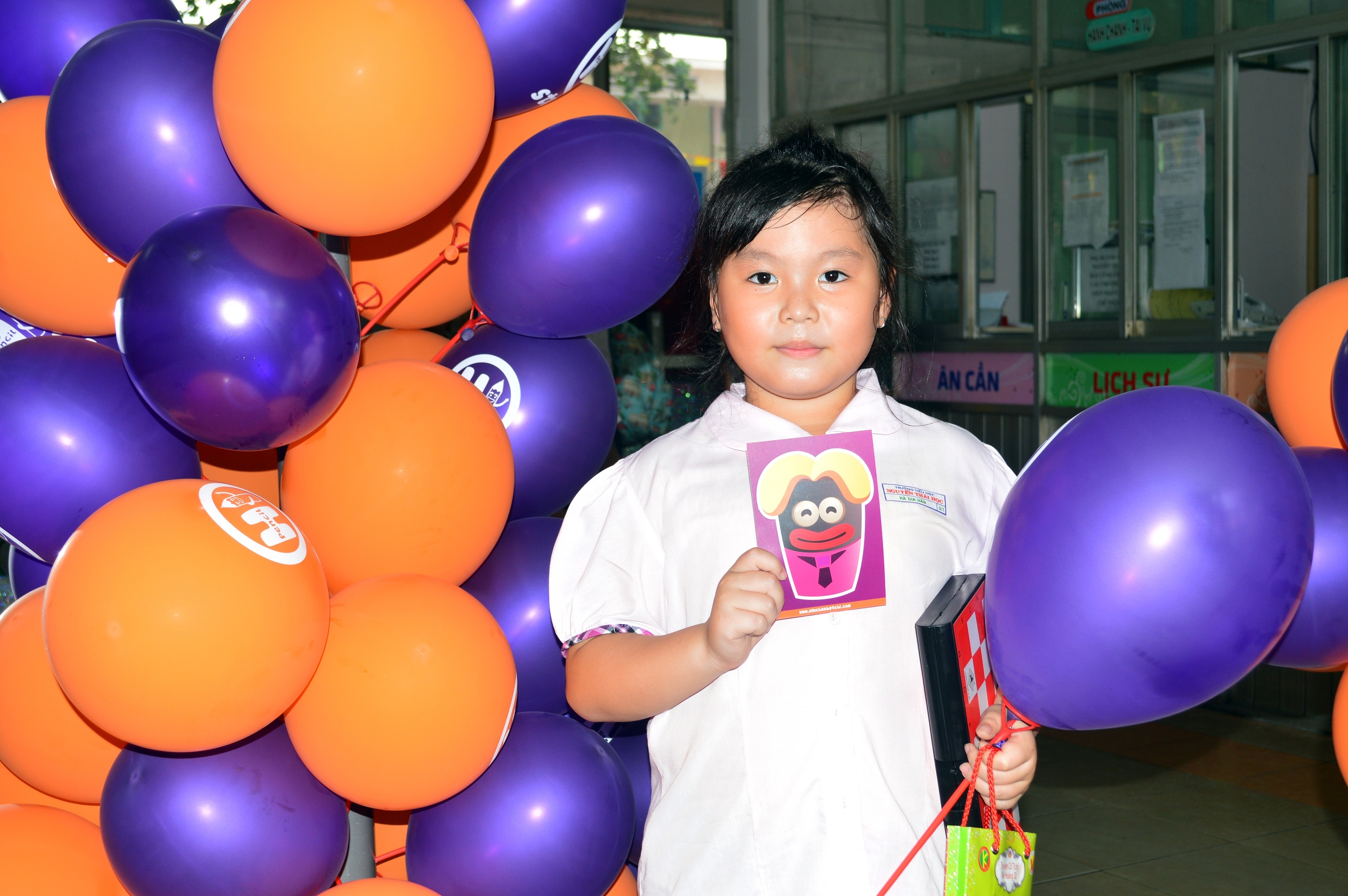 | Sắc màu tím – cam rực rỡ của “Biệt đội bóng bay” tại các trường. |