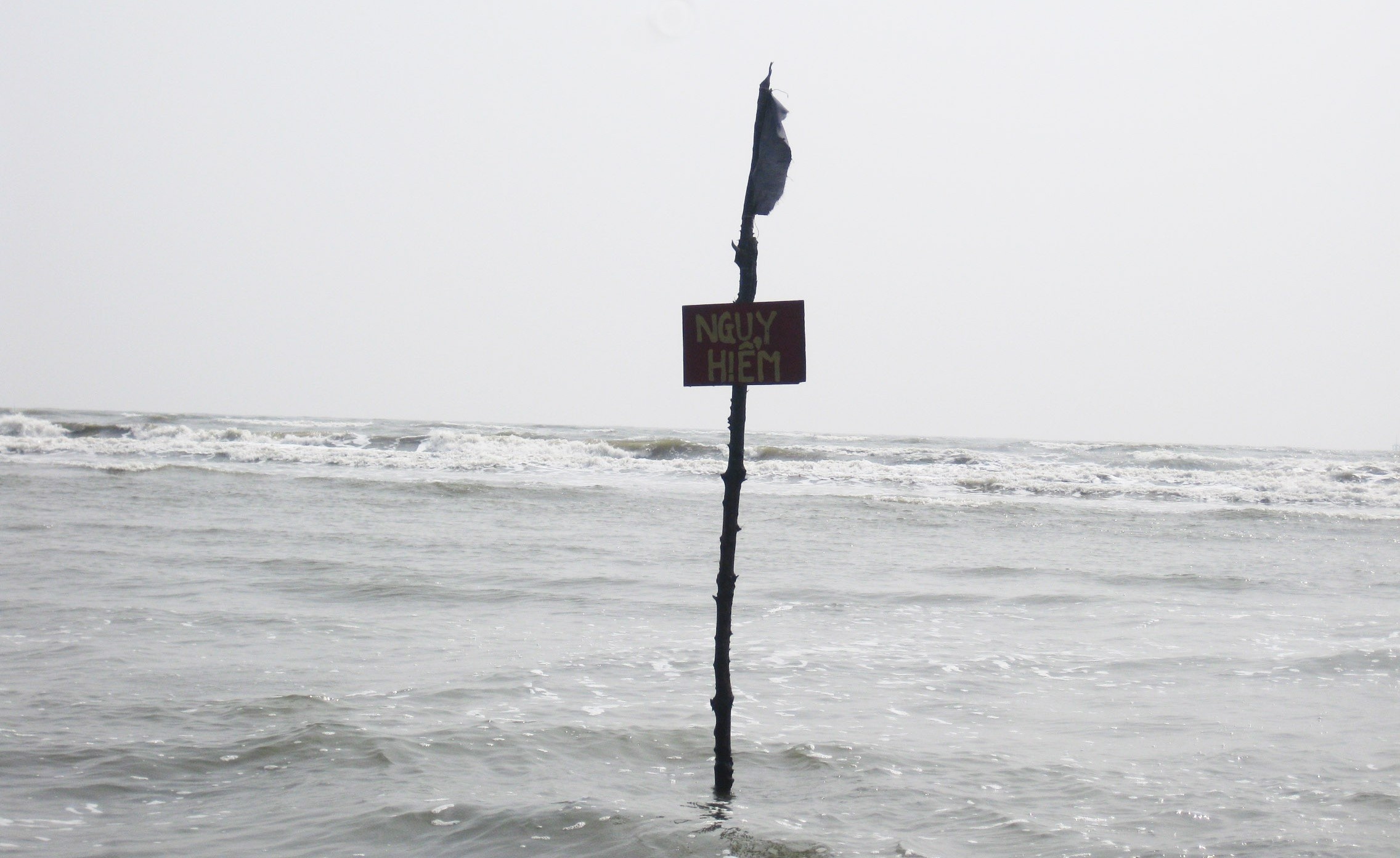 | Khu vực 7 học sinh tắm (bãi Phi Lao 1 thuộc bãi biển 30/4 (huyện Cần Giờ, TP.HCM) có bảng báo nguy hiểm. |