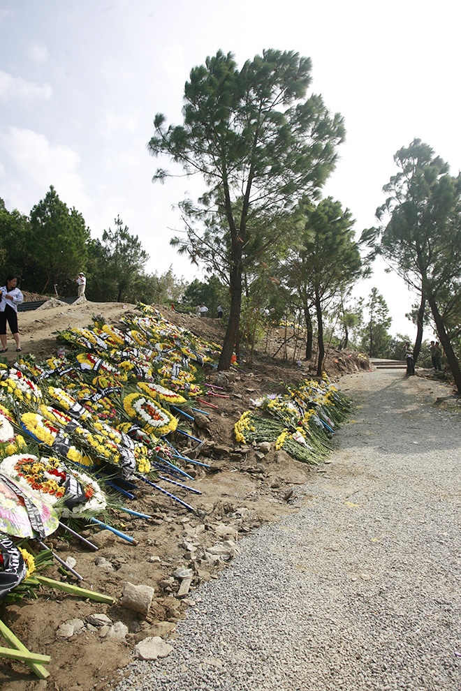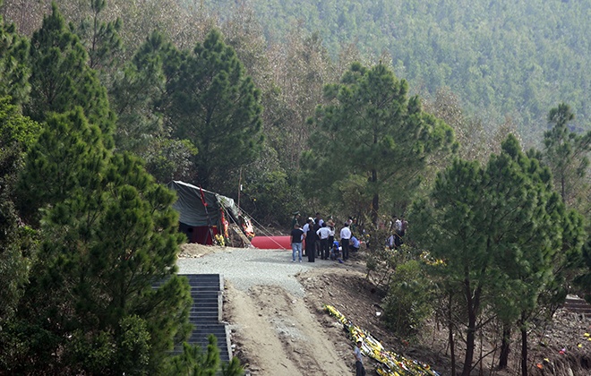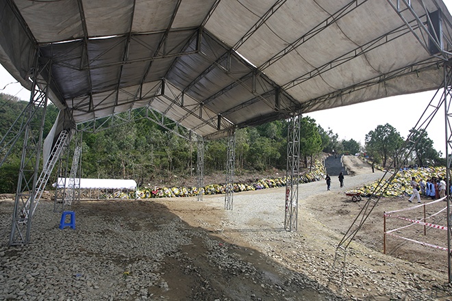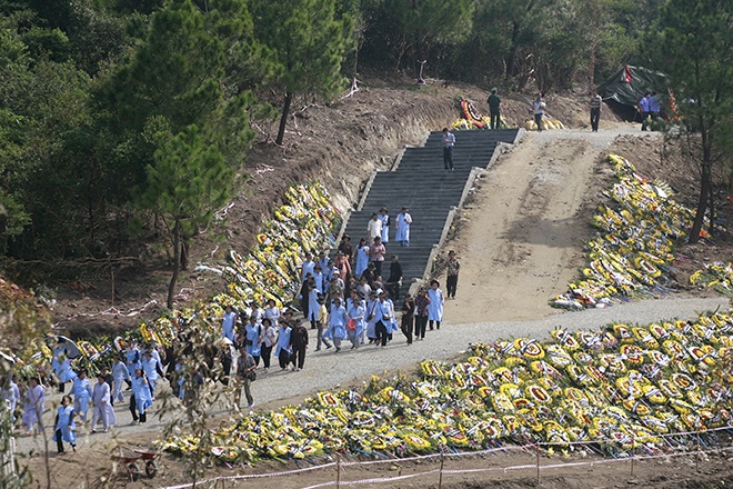 Những vòng hoa được đặt xung quanh phần mộ Đại tướng tại núi Thọ.