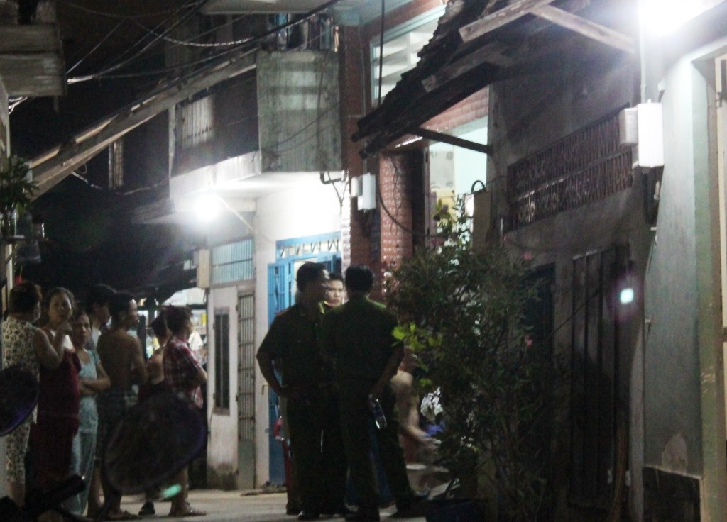 | Công an khám nghiệm hiện trường và lấy lời khai tại nhà bà B.. |
